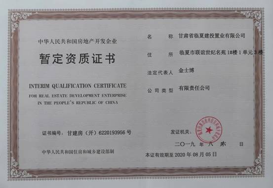 近日,臨夏公司正式取得房地產(chǎn)開(kāi)發(fā)暫定資質(zhì)證書(shū)。該證書(shū)的取得標(biāo)志著公司正式進(jìn)入臨夏房地產(chǎn)開(kāi)發(fā)市場(chǎng)。