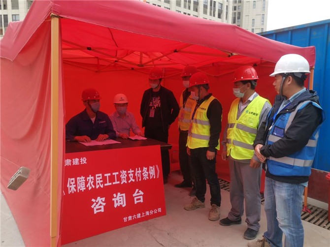 為確?!侗U限r(nóng)民工工資支付條例》宣傳貫徹到位,維護農(nóng)名工合法權益和社會和諧穩(wěn)定,5月1日至5月5日,甘建投(上海)房地產(chǎn)有限公司與施工總包單位甘肅六建一同開展《保障農(nóng)民工工資支付條例》學習宣傳活動。