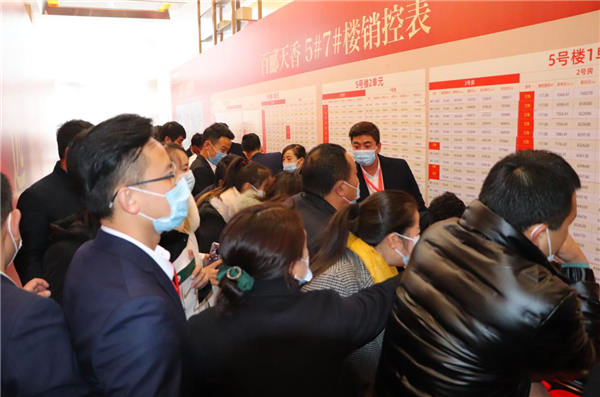 本次百酈天香開盤采取的是線下選房的方式,隨著主持人宣布選房開始,購房者們憑借號碼分批有序的排隊等待進入搶房源專用通道。