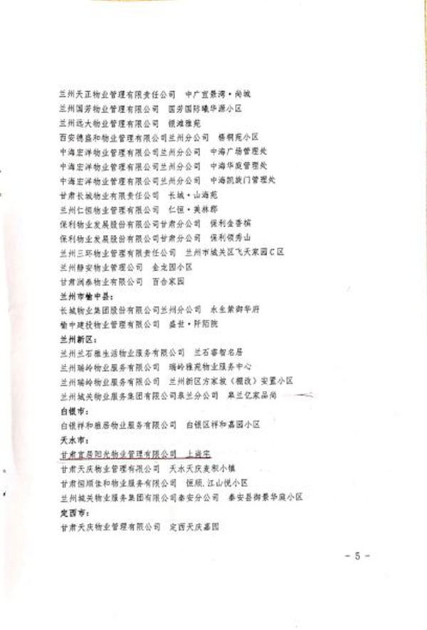 一直以來,在置業(yè)公司的領(lǐng)導(dǎo)下,宜居陽光物業(yè)嚴(yán)格按照“專業(yè)化,再專業(yè)化”的要求,著眼細(xì)節(jié)、規(guī)范操作,全力打造物業(yè)服務(wù)頂級、高端品牌形象。為進(jìn)一步加強(qiáng)內(nèi)部管理,扎實(shí)做細(xì)、做精客服、保潔、秩序維護(hù)、設(shè)施設(shè)備維護(hù)保養(yǎng)等基礎(chǔ)工作,各物業(yè)中心對照《甘肅省省級示范物業(yè)項(xiàng)目服務(wù)評價(jià)標(biāo)準(zhǔn)》(住宅物業(yè))(公共物業(yè)),想業(yè)主所想,做貼心服務(wù),竭力為業(yè)主提供安全、文明、整潔、滿足業(yè)主需求并且持續(xù)改進(jìn)的高品質(zhì)物業(yè)管理服務(wù),強(qiáng)化服務(wù)標(biāo)準(zhǔn)的落地,不斷提升服務(wù)品質(zhì),最終獲得了業(yè)主的廣泛好評、行業(yè)的認(rèn)可和社會各界的贊譽(yù)。自2015年以來,蘭州建工瑞景、南河庭院、張掖濱河小鎮(zhèn)被評為“甘肅省優(yōu)秀住宅小區(qū)”,武威聚銀新都被評為“涼州區(qū)優(yōu)秀住宅小區(qū)”,天水上尚宅被評為“天水市第七批園林式居住區(qū)(單位)”,甘肅宜居陽光物業(yè)管理有限公司榮獲2019年甘肅省最佳物業(yè)企業(yè)提名獎和2020年度甘肅省疫情防控先進(jìn)集體。