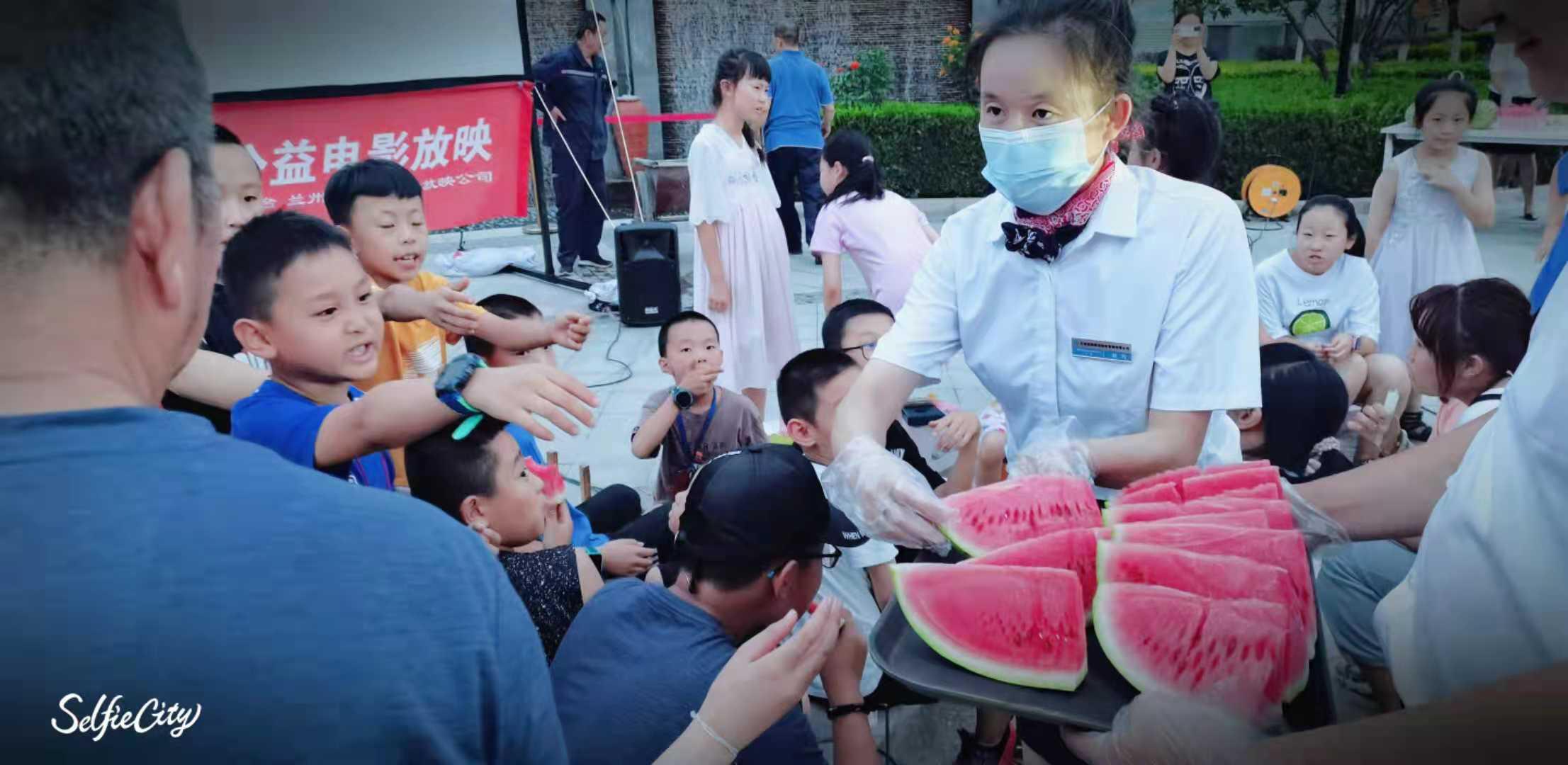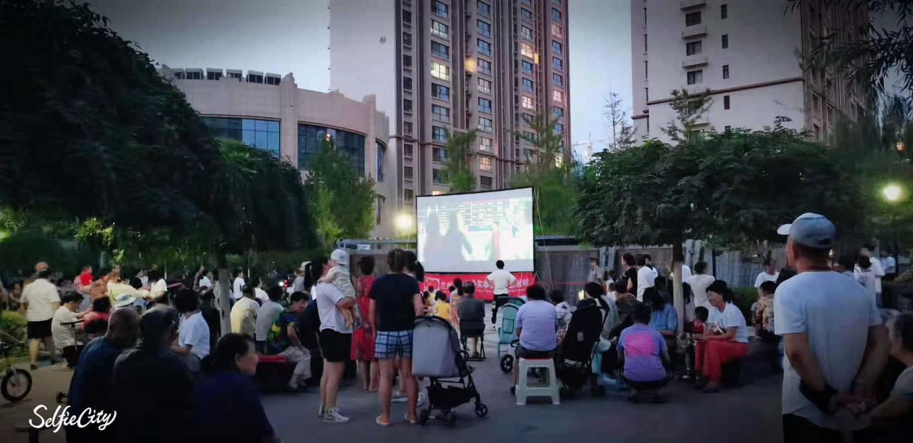 一塊幕布、一個投影儀,當(dāng)酷夏的夜晚被露天電影的屏幕點亮?xí)r,業(yè)主們紛紛進入觀影場地,物業(yè)工作人員隨即將切好的西瓜、蛋糕以及精心熬制的解暑飲料奉上,還時不時向前來觀影的業(yè)主與小朋友們熱情打招呼,在忙碌和歡聲笑聲中與業(yè)主們一起看了一場露天電影,想必這場活動對大人是童年的回歸,對小朋友則是愉快的體驗。
