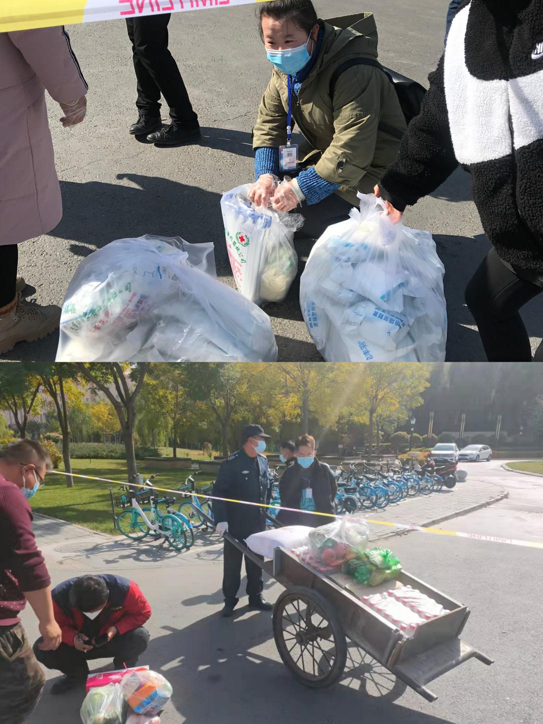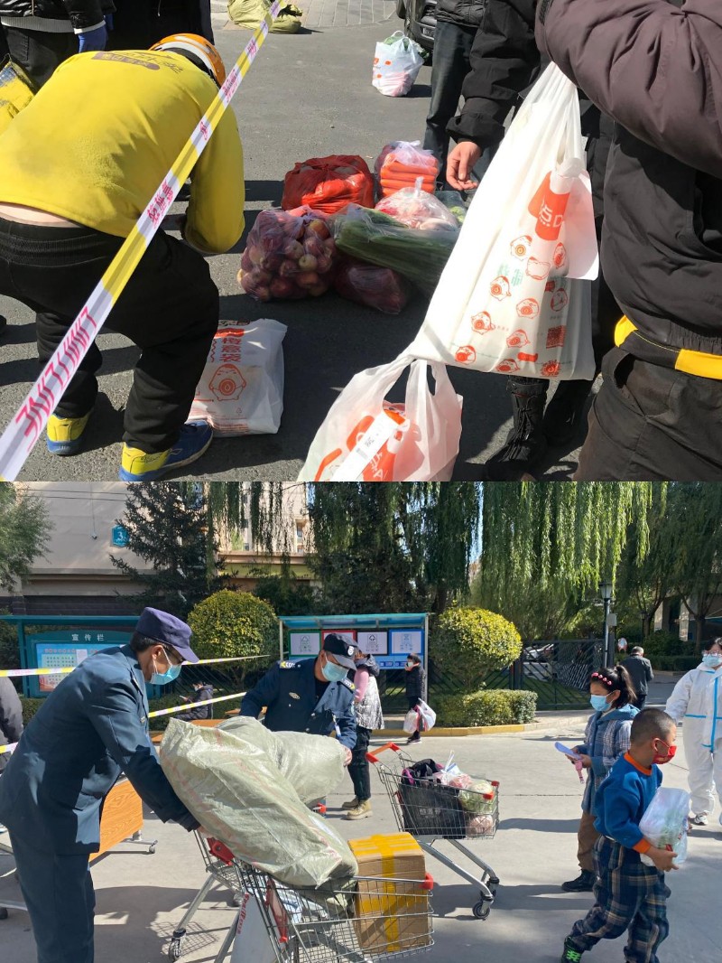 為了保證全小區(qū)住戶吃飯問(wèn)題,分公司人員和物業(yè)工作人員在濱河小鎮(zhèn)小區(qū)門口警戒線一線之隔內(nèi)外對(duì)接,馬不停蹄幫忙運(yùn)送食材及生活用品。期間分公司部分人員也加入了運(yùn)送隊(duì)伍,解決轉(zhuǎn)運(yùn)人員不足的問(wèn)題。