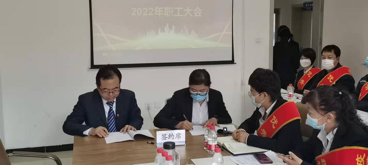 會(huì)議在莊嚴(yán)的國(guó)歌聲中拉開(kāi)序幕,會(huì)上,班子成員進(jìn)行了莊嚴(yán)的廉政宣誓,全體與會(huì)人員對(duì)班子成員進(jìn)行了勤政廉政測(cè)評(píng)。公司經(jīng)理作了2022年職工大會(huì)工作報(bào)告,回顧總結(jié)了2021年度工作,安排部署了2022年重點(diǎn)工作。李衛(wèi)明與所屬11個(gè)物業(yè)服務(wù)中心主任分別簽訂了2022年度《目標(biāo)經(jīng)營(yíng)承包書(shū)》。會(huì)議還對(duì)2021年度工作業(yè)績(jī)突出的先進(jìn)集體和先進(jìn)個(gè)人進(jìn)行了表彰獎(jiǎng)勵(lì)。