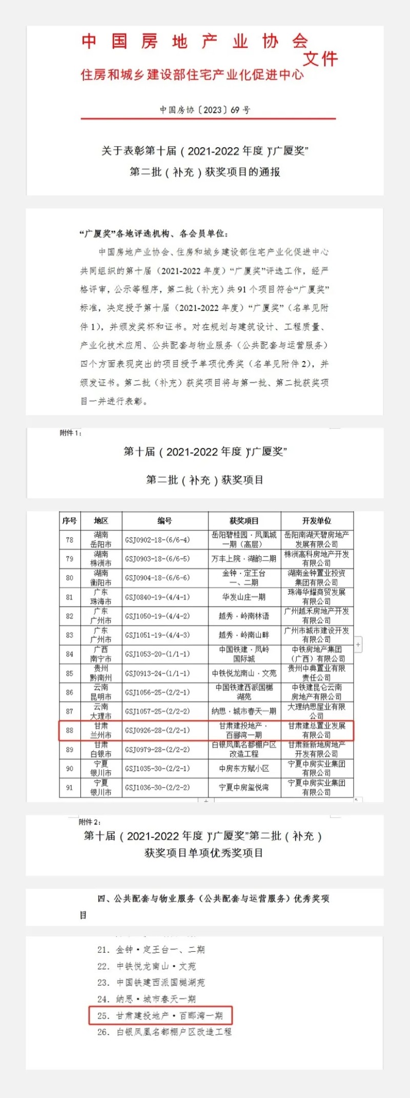 5月15日,由甘肅建總置業(yè)發(fā)展有限公司開(kāi)發(fā)建設(shè)的百酈灣一期項(xiàng)目榮獲中國(guó)房地產(chǎn)業(yè)最高榮譽(yù)獎(jiǎng)項(xiàng)“廣廈獎(jiǎng)”,其中公共配套與物業(yè)服務(wù)獲得第十屆廣廈獎(jiǎng)單項(xiàng)優(yōu)秀獎(jiǎng),成為甘肅省獲此殊榮的兩個(gè)項(xiàng)目之一。