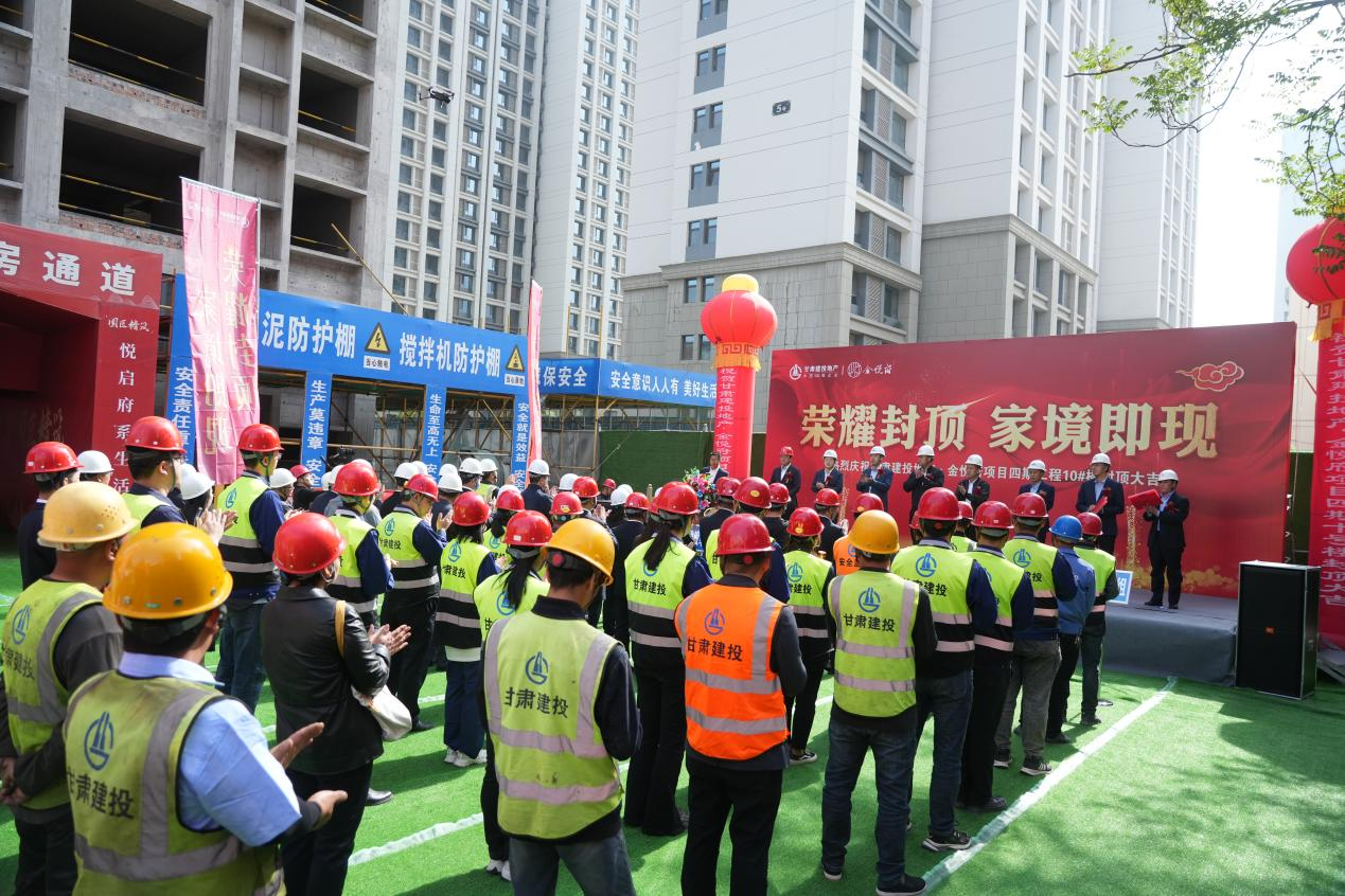 4月30日,甘肅建投地產(chǎn)·金悅府項(xiàng)目四期舉行10#樓封頂儀式。蘭州市城關(guān)區(qū)嘉峪關(guān)路街道黨工委副書記、主任王志剛,置業(yè)公司副總經(jīng)理寇建國,建科院總會計師李逢孝,建設(shè)公司副總經(jīng)理韓鈁及相關(guān)合作單位負(fù)責(zé)人到場參加儀式,整個儀式現(xiàn)場裝飾一新,呈現(xiàn)出一派喜慶祥和的氣氛。