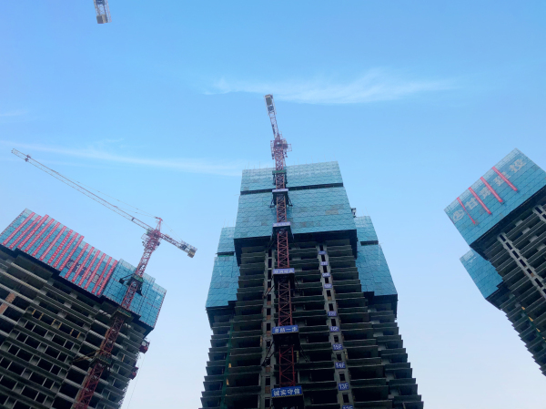 項目規(guī)劃總建筑面積212469㎡,自18年3月1日正式開工,歷經(jīng)一年零4個多月的時間,一年多的寒暑,四百多個朝夕,在現(xiàn)場全體人員的辛勞工作下,頂著高溫酷暑、暴雨侵襲,克服種種技術難題,保質(zhì)量、保安全、保進度,如期完成了主體結構的封頂。
