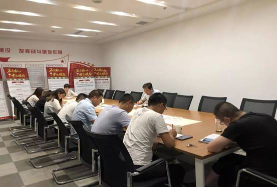在會上,黨支部書記帶領大家一起學習“七五普法”之《商品房銷售管理辦法》、“不忘初心,牢記使命”主題教育應知應會100條;和《習近平新時代中國特色社會主義思想學習綱要》。