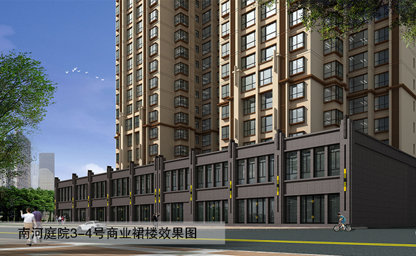南河庭院住宅小區(qū)項(xiàng)目,由深圳廣泰建筑設(shè)計(jì)院設(shè)計(jì),天津法奧建筑設(shè)計(jì)有限公司設(shè)計(jì)園林景觀。由6棟29至33層高低錯(cuò)落住宅樓組成,地上部分6幢高層商住樓和一幢3層會(huì)所,其中1#—4#樓一、二層為商業(yè)裙房,地下建筑面積為67467m2,地下部分為三層人防兼做車庫(kù),一期總建筑面積109306.11m2,住宅面積62156.75m2,商業(yè)面積2245.36m2,小區(qū)的綠化率高達(dá)30%。