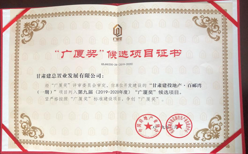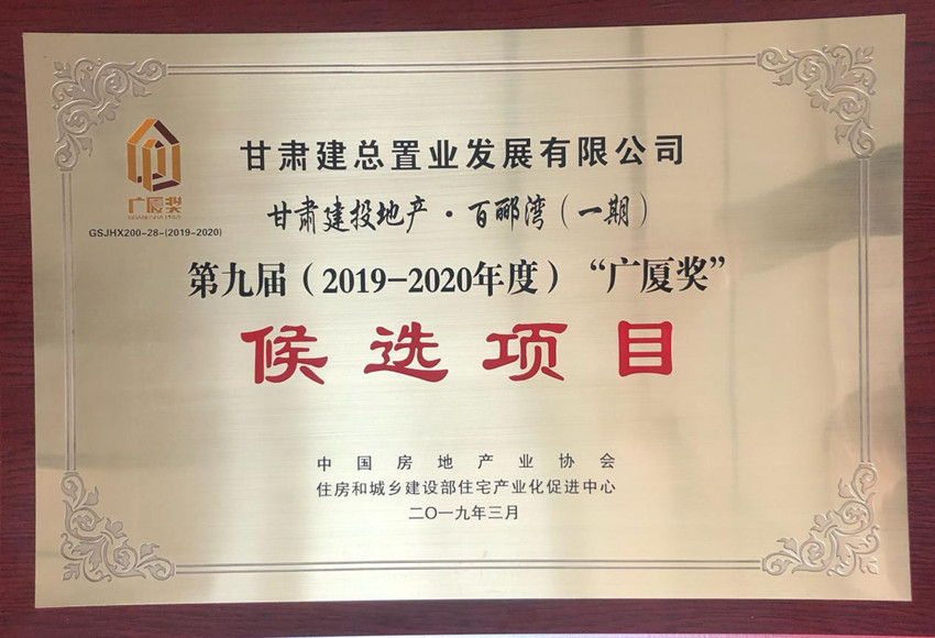 4月11日,在中國(guó)房地產(chǎn)協(xié)會(huì)各地房協(xié)會(huì)長(zhǎng)、秘書長(zhǎng)工作會(huì)議上,“甘肅建投地產(chǎn)•百酈灣(一期)”項(xiàng)目入選第九屆(2019—2020年度)“廣廈獎(jiǎng)”候選項(xiàng)目。